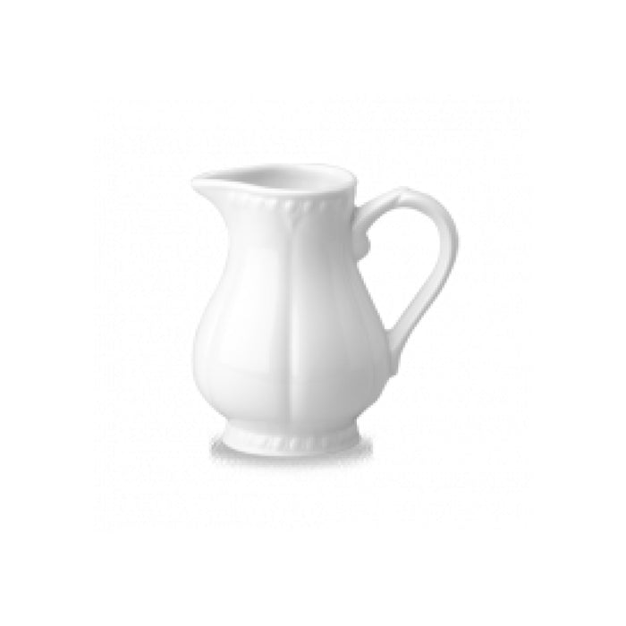 The Churchill 5 Oz. Super Vitrified Buckingham Creamer is a high-quality creamer that is designed for both functionality and aesthetic appeal. With a capacity of 4.9 ounces, this creamer is perfect for serving small amounts of cream or milk for tea or coffee. Features a convenient spout for easy pouring, ensuring a mess-free serving experience. This creamer is made of super vitrified ceramic, which is known for its strength and resistance to chipping and cracking. This makes it a durable and long-lasting option, perfect for daily use.