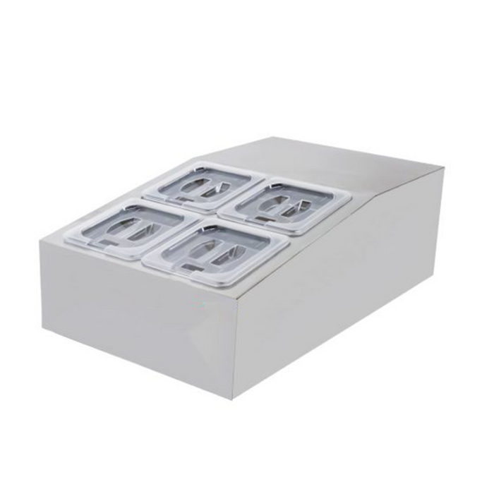 - Fits 4 X 1/6 GN food pans (2 x 6” and 2 x 4” deep)