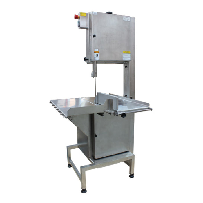 Boasting a razor sharp 124” blade and a powerful 3 HP motor, Omcan’s floor band saw is perfect for supermarket and butcher shops. It features a sliding stainless steel table, a cut regulator, and a pushing lever. Easy to operate.