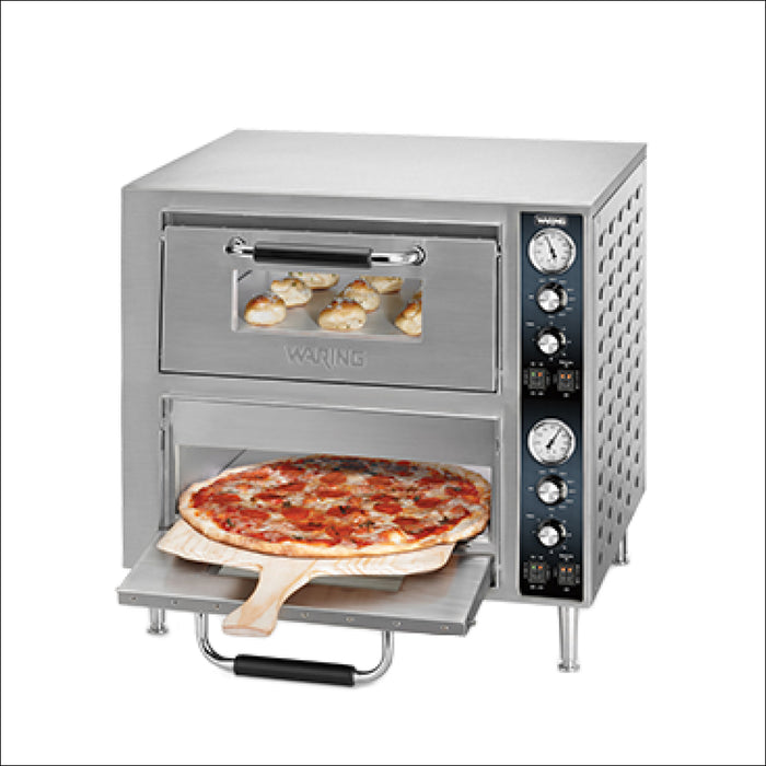 Waring Commercial WPO750 27" Double Deck Countertop Electric Pizza Oven With Dial Display - 240V, 3200W