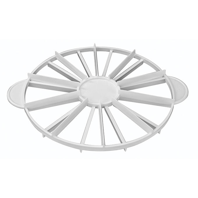 This cake marker is made of food grade polypropylene plastic, which is durable and easy to clean while prevents health hazard to your guests. The marker is double sides and can score the cake up to 10" round for even slices.