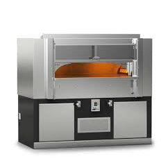 The Fire Deck 8645 oven features a door opening 56 inches wide x 10 inches high, complemented by a glass heat shield and stainless steel mantle. The cooking area is 68 inches wide x 32 inches deep, resulting in a 15-square-foot cooking surface. A tensioned steel exoskeleton surrounding the hearth and dome perimeter ensures structural integrity and longevity. Wrapped in spun ceramic fiber insulation and requiring only a 1-inch side clearance to combustibles, the monolithic 4 inch thick cast-ceramic hearth and monolithic 4-inch thick dome rest on a black painted steel stand. The oven body front is finished with stainless steel; galvanized steel is used for the top, back and sides. The oven arrives completely assembled, ETL Listed, ready to install and is made in the USA.