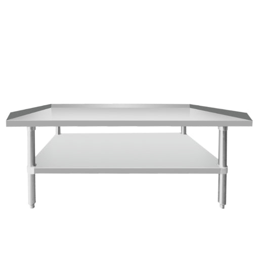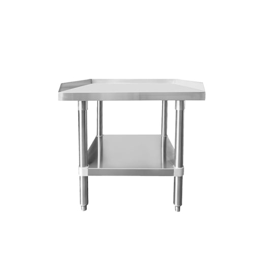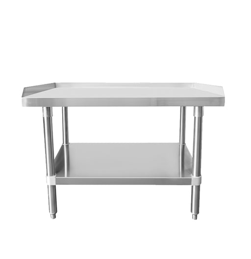 Made of durable stainless steel 24" x 48" tabletop Entire top mechanically polished to a satin finish Galvanized legs and adjustable feet All edg...