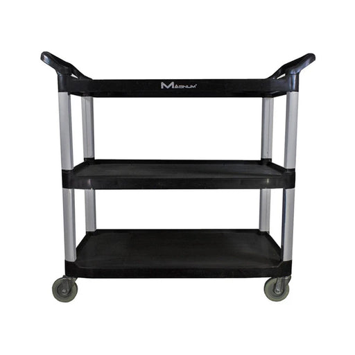 Features 3 tiers, each with a shelf capacity of 143 lbs 5-inch heavy-duty swivel casters for smooth movement Dual-sided push handles for easy man...