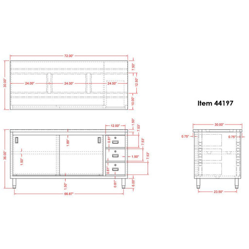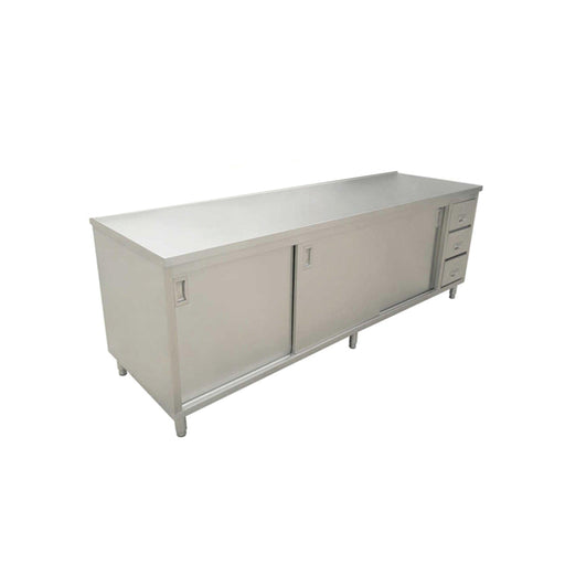 30" x 72" worktable Constructed of 430 stainless steel Enclosed cabinets, drawers and sliding doors Durable and extremely clean Certified for com...