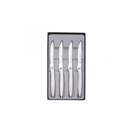 Durable Corrosion & Rust-Resistant Stainless Steel High Quality 4" Serrated Blades cut easily through steaks & chops Never need sharpening...