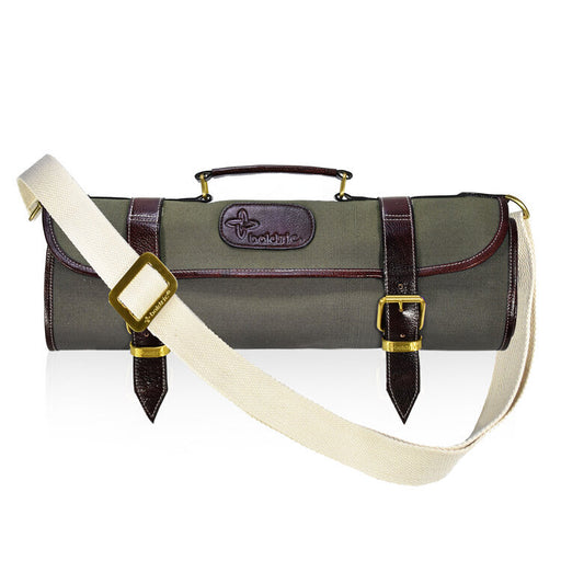 Roll-Up Bag Natural Cotton Canvas 9 Pockets for Knives, Cutlery and Utensils Zippered Utility Pocket Adjustable Canvas Shoulder Strap Polished Br...
