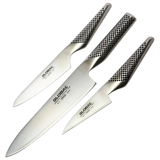Made from Cromova 18 Stainless Steel 3 piece set: 8-inch chef's knife, 5-inch utility knife, and 3.5-inch paring knife Hollow weighted handle Ice...