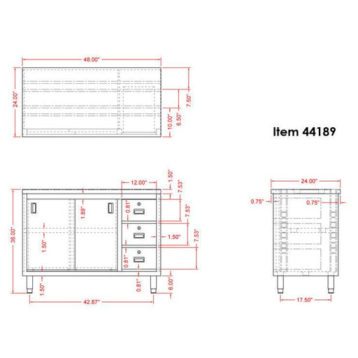 24" x 48" worktable Constructed of 430 stainless steel Enclosed cabinets, drawers and sliding doors Durable and extremely clean Certified for com...