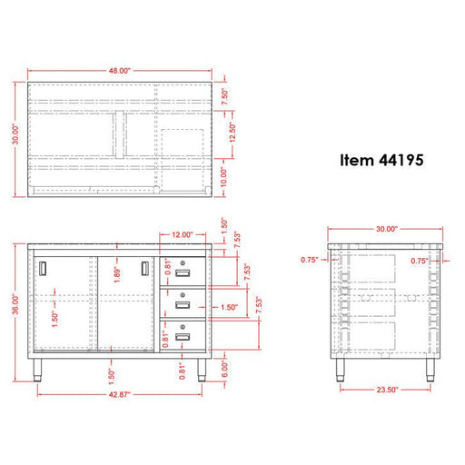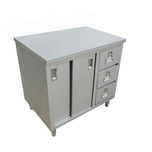 30" x 48" worktable Constructed of 430 stainless steel Enclosed cabinets, drawers and sliding doors Durable and extremely clean Certified for com...