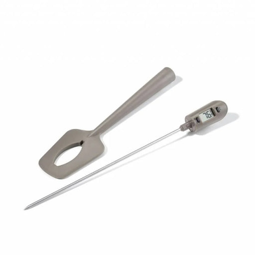 High-heat silicone material Combines a stirring spatula & digital thermometer into a single 14" tool Accurate temperature reading on a clear ...