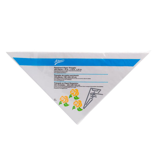 15" length Made of pure vegetable parchment Comes in a package of 100 bags Simply make these triangles into a cone and insert into the tube of yo...