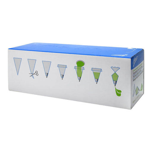 14" pastry bag Plastic coated inside for easy cleaning Hemmed tip, French seamed side Stitched top with eyelet for hanging Outside fabric never g...