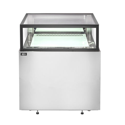 36" flat top refrigerated showcase Luxurious stainless steel and glass design Brilliant internal LED illumination Digital temperature controller ...