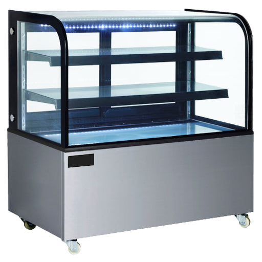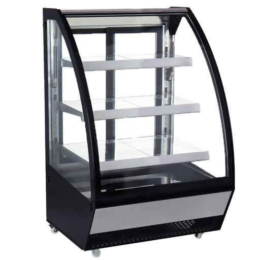 39" refrigerated showcase Stainless steel frame and double-pane insulated glass construction Curved front glass lifts up for easy access Sliding ...