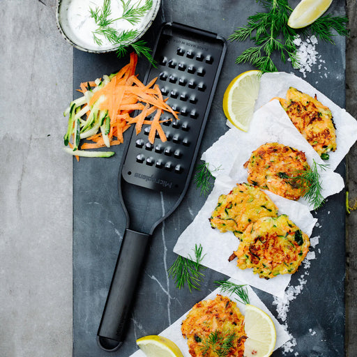 Features a fine, surgical-grade stainless steel blade Funnel-shaped blade design directs grated ingredients precisely onto the dish Simplified de...