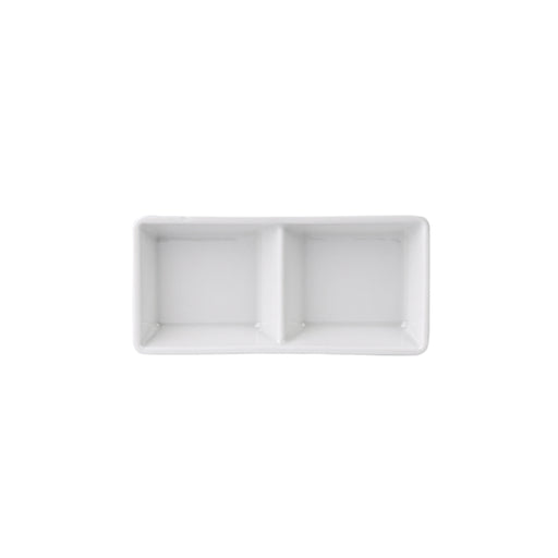 6" x 2.25" 2 compartment serving dish Made of high-quality porcelain material Comes in a case of 24 Chip-resistant and scratch-proof Stackable de...