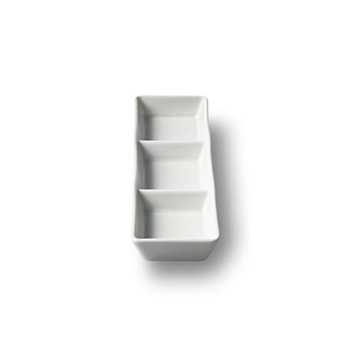 7.25" x 2.25" 3 compartment serving dish Made of high-quality porcelain material Comes in a case of 48 Chip-resistant and scratch-proof Stackable...