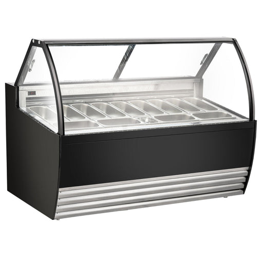 69.5" gelato display showcase Comes with 13 (5L) pans to showcase a variety of gelato flavors Dual LED lighting temp. displays inside and at back...