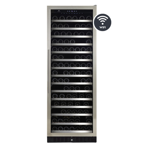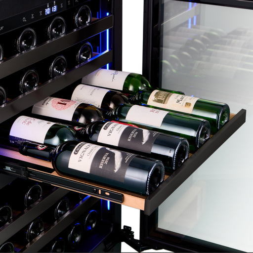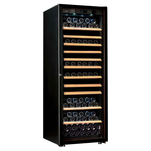 23.5" wine cabinet 166 bottles capacity Seamless glass reversible door Blue and white LED lighting 13 sliding shelves in wood Embraco (Inverter) ...