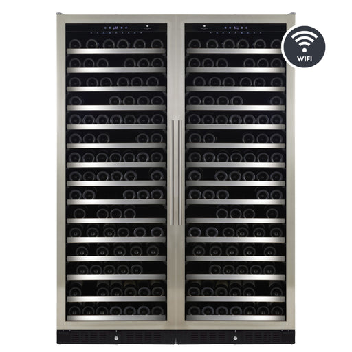 52" wine cabinet 362 bottles capacity Seamless glass reversible doors with lock and alarm Blue and white LED lighting 30 sliding shelves in wood ...