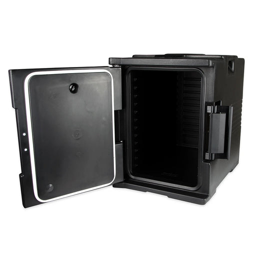 Made of durable, lightweight polypropylene material Insulated to keep food hot or cold for up to 5+ hours Holds up to 4 full-size food pans Featu...