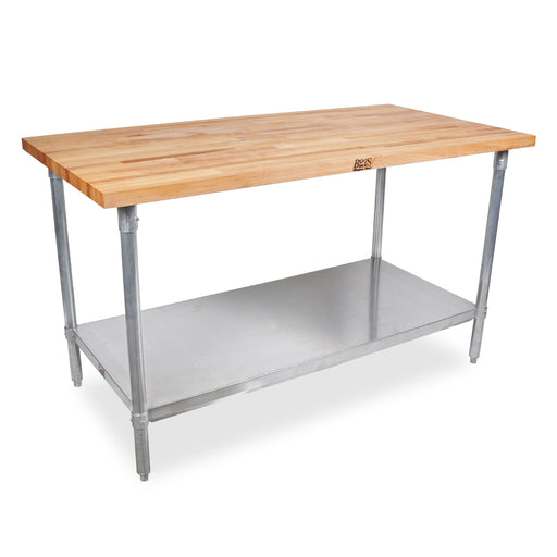 1-1/2" Thick Northern Hard Rock Maple Flat Top Galvanized Steel Base, Undershelf, and Bullet Feet Adjustable undershelf stores supplies, small app...