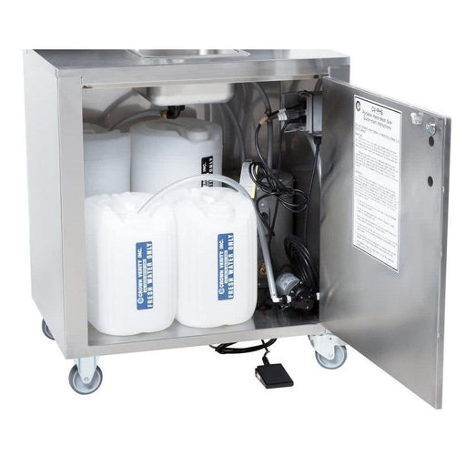 Three 12"L x 6"W x 5"D sink basins Faucet, soap and towel dispensers included Removable fresh and wastewater tanks included (2 each) City water an...