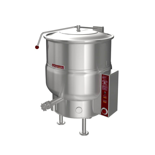 This Crown EL-40 40 Gallon Stationary Electric Kettle - 208V is self-generating, electric, tri-leg kettle. A double wall kettle interior shall fo...
