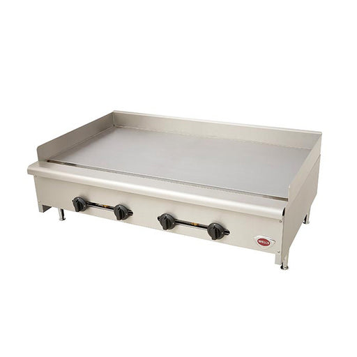 (6) 28,000 BTU burners Stainless steel front, sides, and back 4" adjustable stainless steel legs 1” thick polished steel griddle plate Thermostati...