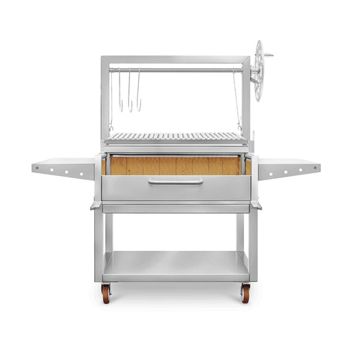 65" Argentine-style outdoor BBQ grill Constructed from heavy-duty stainless steel Wood and charcoal fired Includes 2 cooking grates, 1 fire box a...
