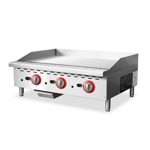 36" countertop 3-burner griddle Stainless steel construction 90,000 BTU heating power for efficient cooking Large 12” robust dial controls Manual...