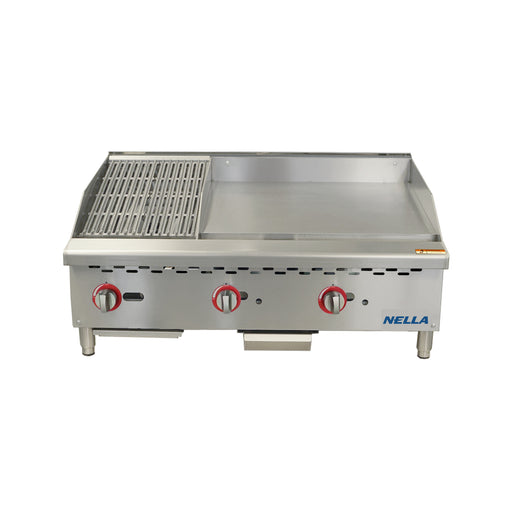 Dual-function gas countertop unit: griddle and charbroiler 95,000 total BTU for high-performance cooking Durable stainless steel construction Coo...