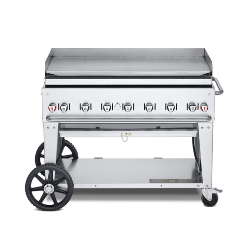 48" griddle surface with a stainless steel construction Powered by liquid propane 15,000 BTUH stainless steel burners Two 14” wheels and two tota...