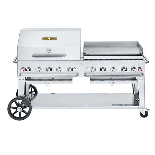72" Mobile BBQ Grill with Dome and Pro Griddle Package Stainless steel construction for durability Fueled by natural gas Removable grease tray fo...
