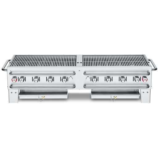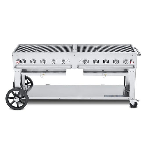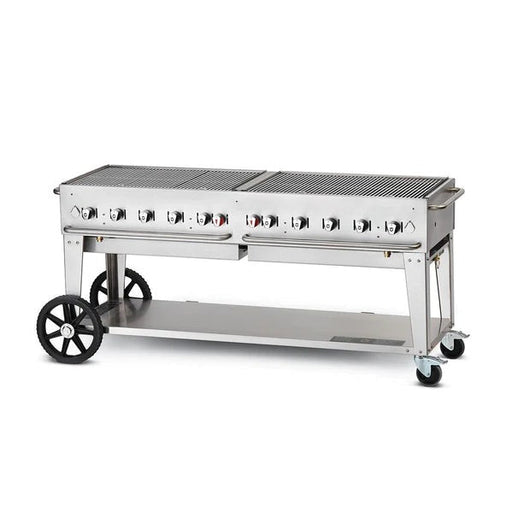72" mobile BBQ grill with 10 burners Stainless steel construction for durability Fueled by natural gas Removable grease tray for easy cleaning Ro...