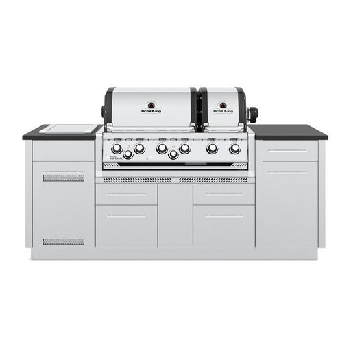 55,000 BTU Main Burner 10,000 BTU Side Burner 15,000 BTU Rear Rotisserie Rotisserie Kit Included The Broil King® Imperial™ S 590i features 625...