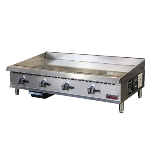 60" natural gas griddle with thermostatic control Adjustable manual gas controls provide easy and safe operations Durable stainless steel constru...
