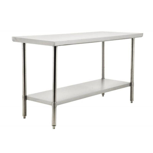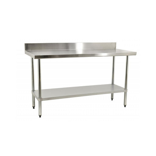 20-Gauge 430 Stainless Steel top shelf with 4" back splash 20 Gauge. 430 Stainless Steel undershelf and hat channel; stainless steel leg and socke...