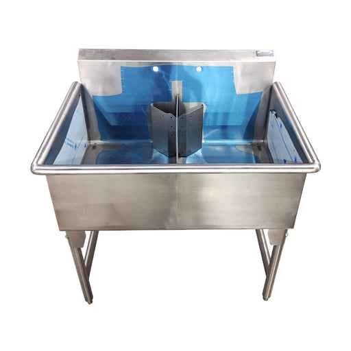 Two compartment commercial sink 24" x 24" x 13.5" sink basin 6" high backsplash 4 sturdy, welded in legs Heavy-duty stainless steel construction ...