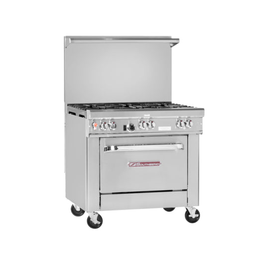 36.5" commercial range with 1 oven All stainless steel construction 6 cast-iron open burner grates Oven thermostat adjusts from 79.4°C to 287.8°C...