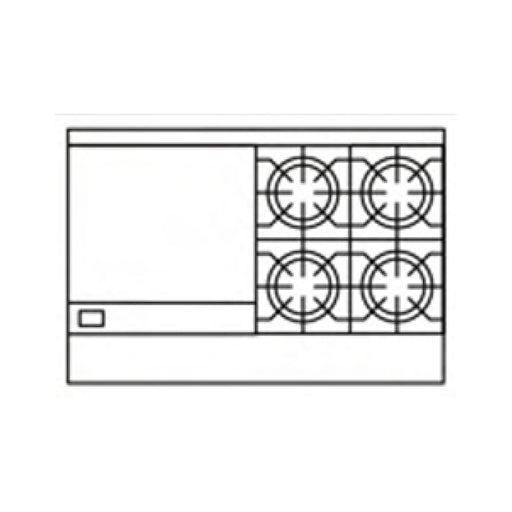 Stainless steel exterior construction 36" combination range with a 24" griddle top and 2 open, cast-iron burners Heavy-duty 3/4" thick polished s...