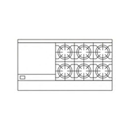 36" restaurant range with 1 oven Stainless steel construction 6 cast-iron open burner grates Oven thermostat adjusts from 121°C to 260°C (250°F ...