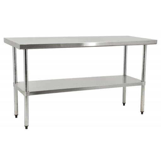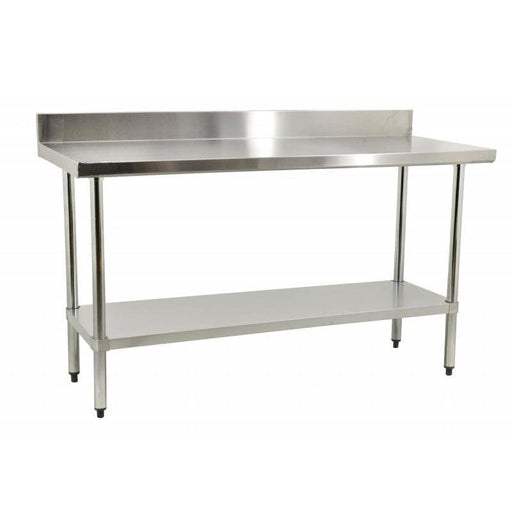 20-Gauge 430 Stainless Steel top shelf with 4" back splash 20 Gauge. 430 Stainless Steel undershelf and hat channel; stainless steel leg and socke...