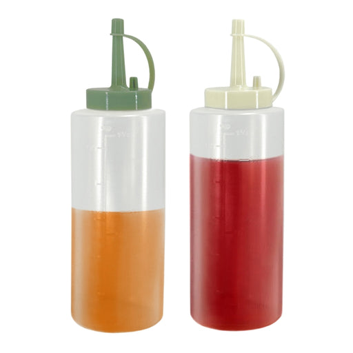 10 oz. capacity Made of clear plastic Comes in a pack of 2 Ideal for condiments, dressings, sauces, and more Top rack dishwasher safe Descrip...