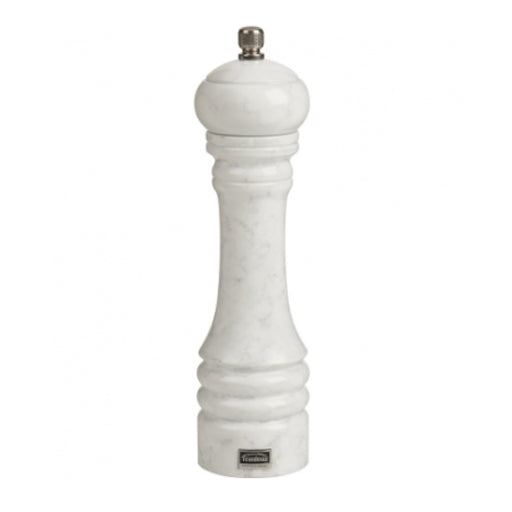 Made of durable marble with a stainless steel top 9" tall with a 4" diameter Adjustable grinding mechanism for fine to coarse grinds Easy to fill...