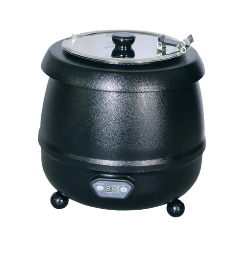 10 L (10.6 qt.) capacity soup kettle Made out of high quality black powder coated & stainless steel Includes stainless steel lid Maximum temp...