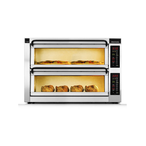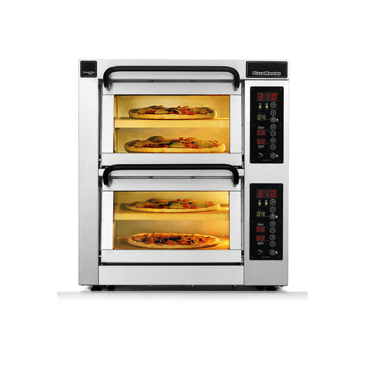 Electric pizza oven with 2 chambers and a total width of 30 inches Digital control panel for precise temperature and timer settings See-through o...