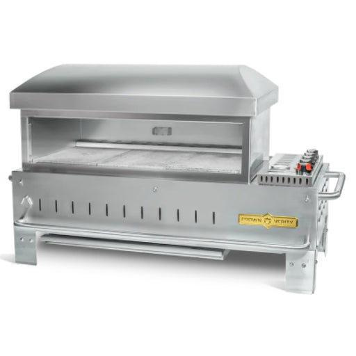 Pizza Oven body and legs are made of 304 stainless steel 12,500 BTUH stainless steel burners and 5,000 BTUH Advanced Pilot System Two 14" wheels a...