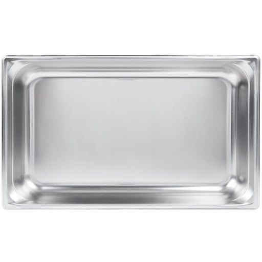 Full size super pan with 4" deep 14.2 qt capacity Made of 22 gauge stainless steel construction Anti-Jamming lugs and reinforced spouted-shape cor...